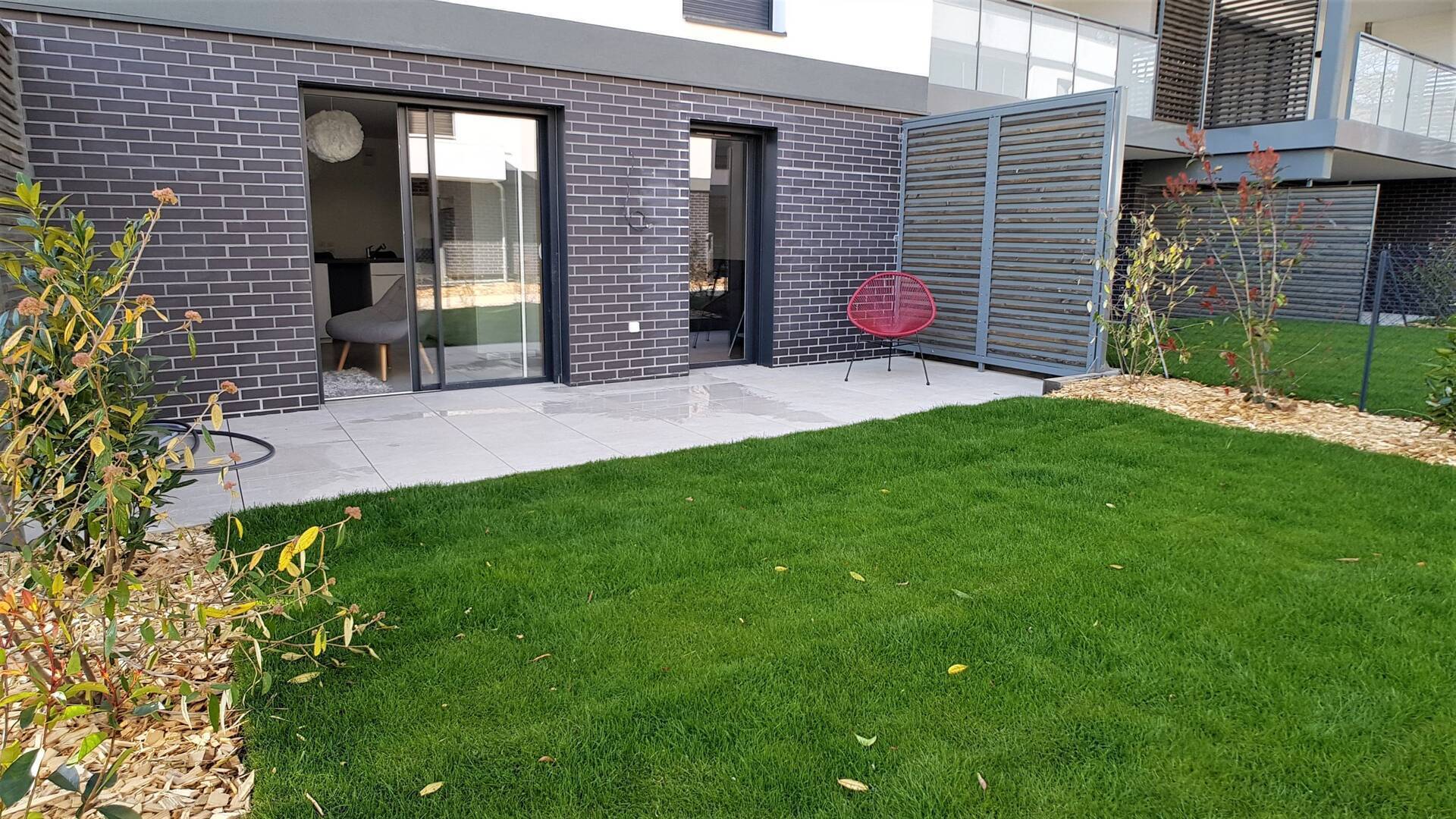 Magnifique T2 en rez de jardin comme NEUF. DISPONIBLE à partir du 2 février 2026. Tout le confort d'un appartement meublé proche des bus TPG lignes 60 et 61. Cuisine équipée, salon avec terrasse exposée EST, grande chambre avec placards, salle de bain. Garage box fermé.